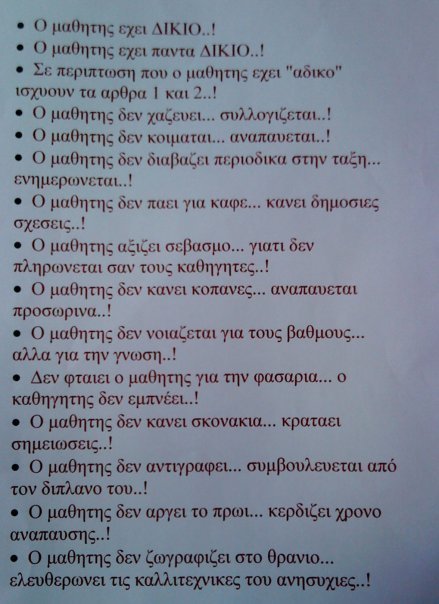 Τα δίκια του μαθητή (αφιερωμένο στους καθηγητές...)
